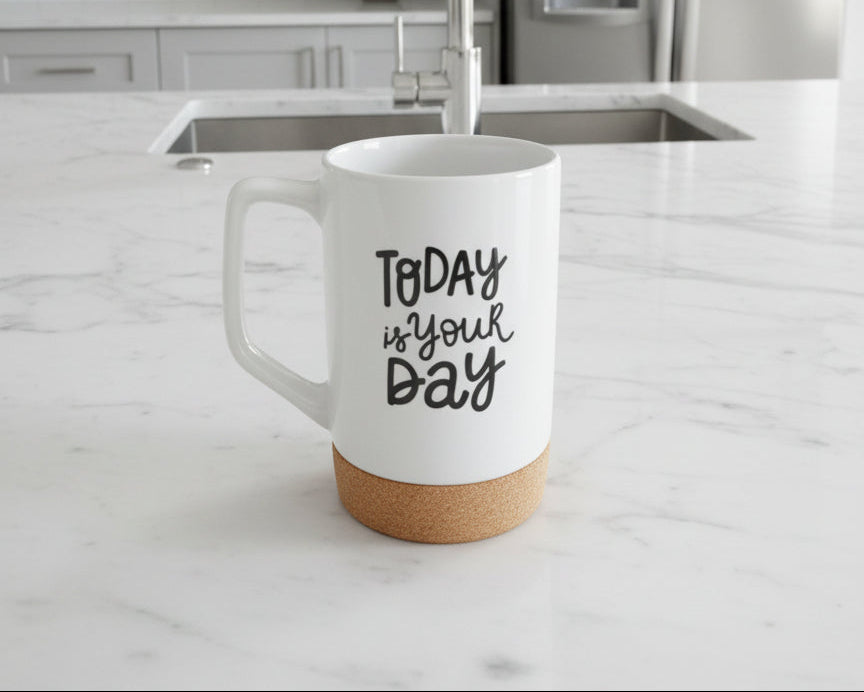The 17 oz Ceramic Sublimation Mug comes with a removable cork base and splash-proof lid. Customizable with dye-sublimation printing, it’s dishwasher and microwave safe, and arrives secure and damage-free.